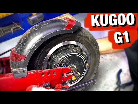 Чтобы поменять камеру на KUGOO G1, нужно открутить колесо и очень аккуратно вытянуть провод из деки. Затем снять диск и разобрать само колесо.