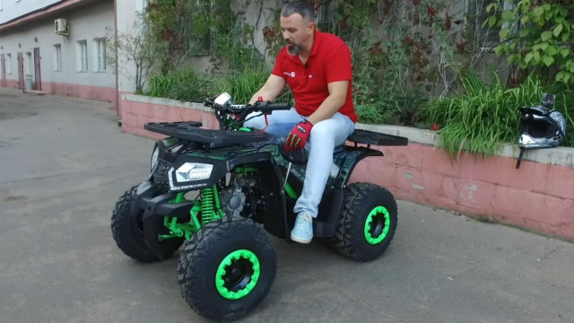 Предмаксимальная комплектация подросткового квадроцикла в классическом утилитарном дизайне, на больших 8-дюймовых колёсах, отличающаяся полуавтоматической трансмиссией с более широким диапазоном передач