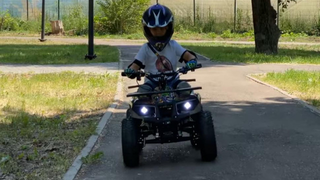 Детский электрический квадроцикл для активной езды. Отсутствие шума выхлопа, дыма и бензина делает квадроцикл невидимкой в городских парках