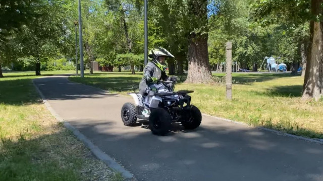 Квадроцикл оборудован 6-дюймовыми колёсами и шинами с внедорожным протектором