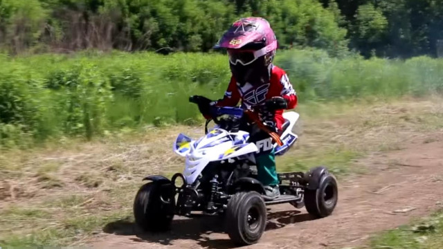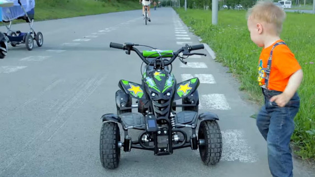 Отлично подойдёт детям от 3 до 7 лет. Квадрик оборудован компактным двухтактным бензиновым двигателем в паре с фрикционным сцеплением центробежного типа