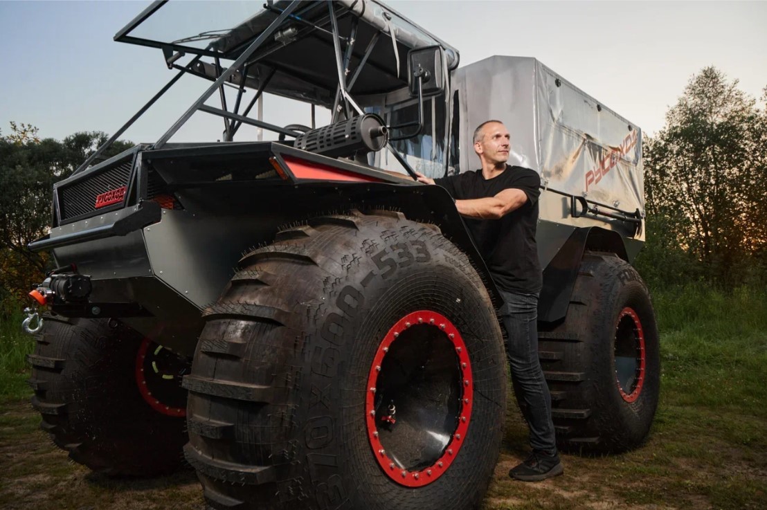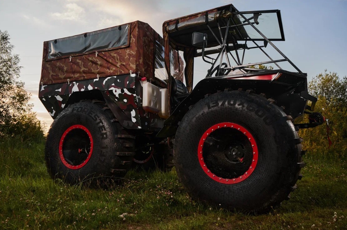 Вездеход легко справится с болотистой месностью, водой и других зонах бездорожья.