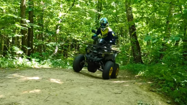 Квадроцикл с мощным электрическим двигателем 1500 ватт и шоссейными шинами. Эта модель подойдёт для подростков от 12 лет и отлично выдержит взрослого