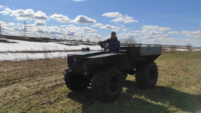 Это модель Вепрь В7, только в неё внесли дополнения, чтобы заказчику было проще и быстрее для самостоятельной доработки вездехода под свои требования.