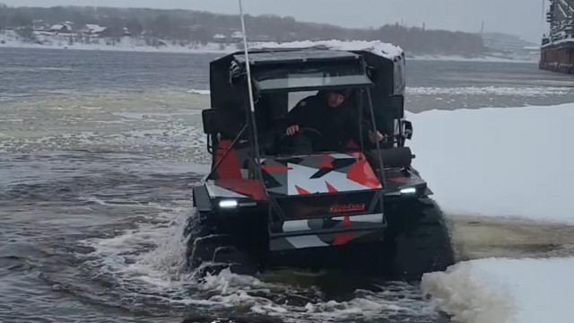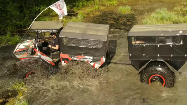 Вездеход легко справится с болотистой месностью, водой и других зонах бездорожья.